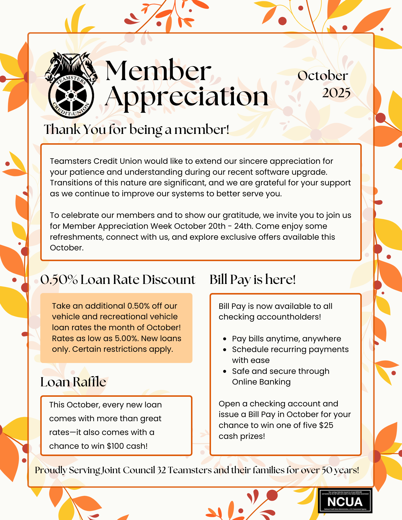 - Teamsters and their family relatives can join the credit union by establishing a Share Savings Account with $20 and completing this form here.